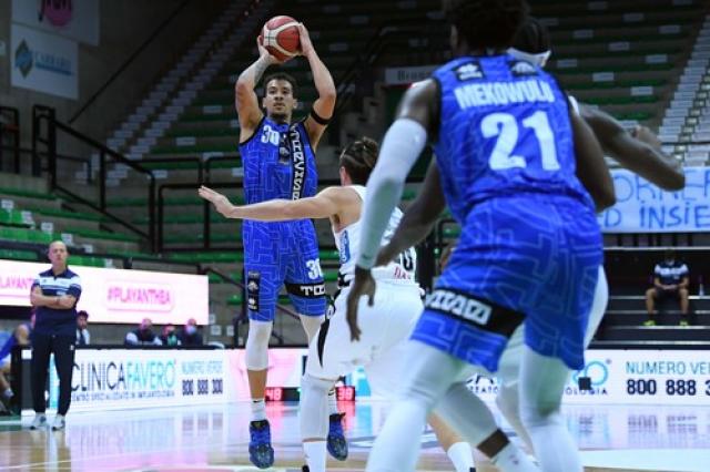 En la misma zona, Treviso Basket venció 91-67 a Aquila Basket Trento. El local dominó de punta a punta y en el único momento en que aflojó fue en el segundo cuarto. Treviso se quedó con los primeros diez minutos y sacó una ventaja importante de 27-16, pero en el período previo al descanso largo tiró muy poco al aro y estuvo errático desde la puntería (3/7 en dobles y 1/6 en triples): llevaba una ventaja de 41-31 a pesar de ceder el parcial 14-15.