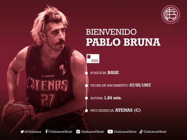 El base Pablo Bruna, de pasado en Platense y Atenas el año pasado, será el nuevo jugador de la institución. Es la quinta cara del conjunto de Leo Costa