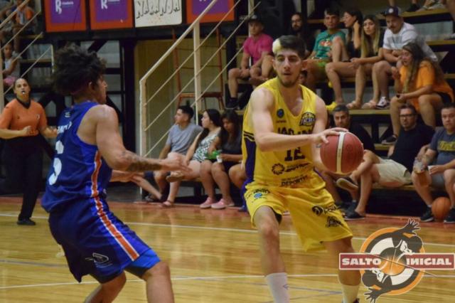 El arranque del juego comenzó con dominio del conjunto local. Hizo circular más el balón, encontró tiros cómodos y castigó. Francese (6) y Arancibia (5) fueron determinantes en la transición. Rivadavia logró un parcial 16-4 en los primeros minutos. Luego del tiempo muerto solicitado por Cabañas, Jáchal reaccionó en el ataque. Comenzó a buscar las ventajas. Giménez (6) desde el poste bajo y Sarruff con triples (6) fueron las alternativas. El primer cuarto cerró 27-21.