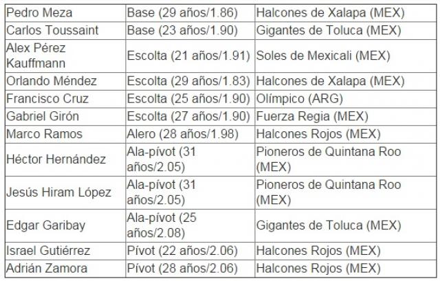Héctor Hernández, Orlando Méndez y Francisco Cruz encabezan la lista de 12 jugadores que cuentan con la aparición de jugadores jóvenes a seguir como el escolta Alex Pérez o el pívot Israel Gutiérrez: