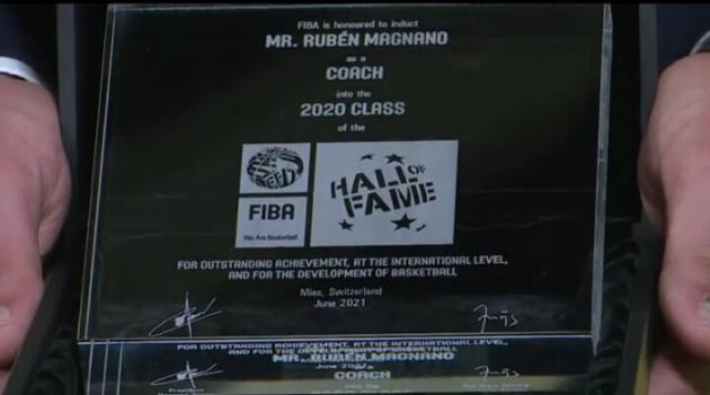 La oficialización se llevó a cabo de forma virtual, donde cada integrante de la clase 2020 tuvo su momento para hablar y comentar además de un video compacto llevado a cabo desde FIBA. Rubén Magnano comentó que "es un enorme premio y un gran honor ser capaz de compartir este honor con todos ustedes. Fueron los días más felices de mi vida como entrenador de básquet. Hace unos meses Horacio Muratore me informó que había sido elegido para ser introducido al salón de la fama. Fue un momento único e inexplicable en mi vida."